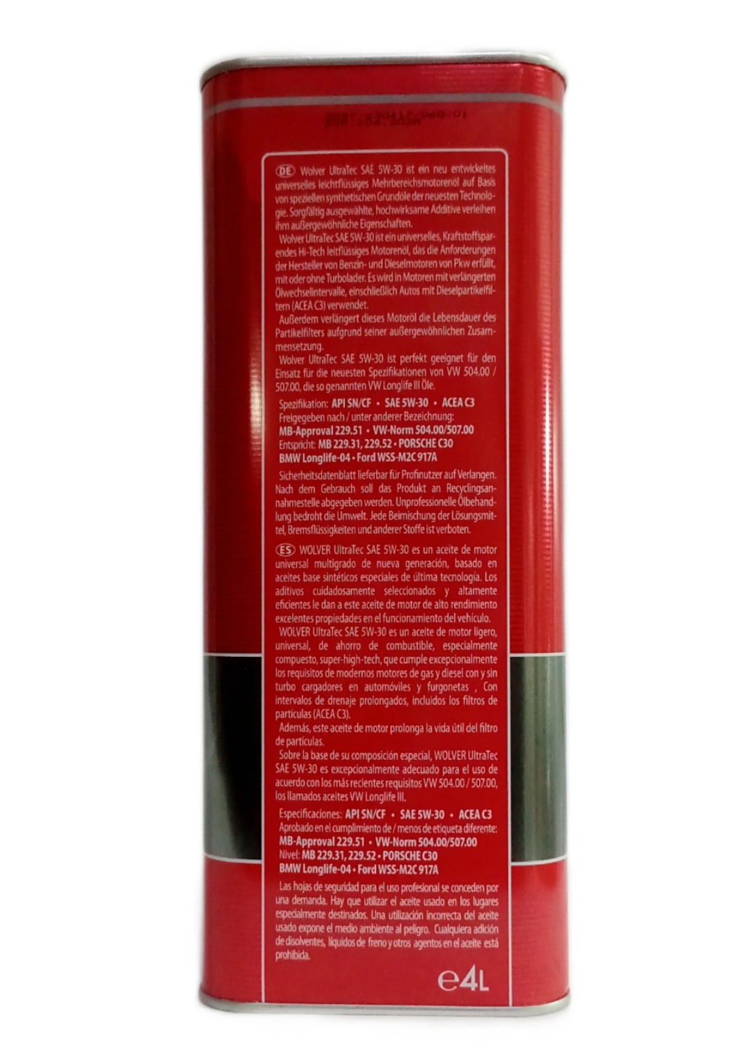 Dvigatel moyini tanlashda avtomobil egasi ishlab chiqaruvchining ko'rsatmalariga amal qilishi kerak.Wolver UltraTec SAE 5W-30 - bu eng yangi texnologiyaning maxsus sintetik tayanch moylariga asoslangan yangi takomillashtirilgan universal oson oqimli har qanday ob-havoga mo'ljallangan motor moyi. Ehtiyotkorlik bilan tanlangan, yuqori samarali qo'shimchalar unga ajoyib xususiyatlarni beradi.